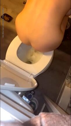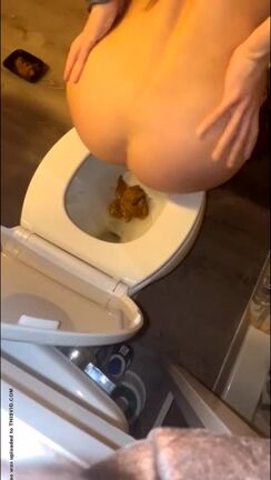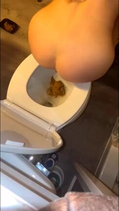 White Girl takes sloppy dump in toilet