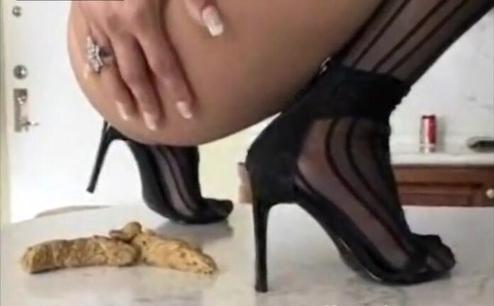 Leggy girl with big tits poops
