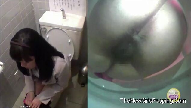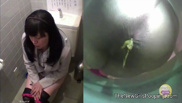 Girl open wide legs and shitting on the toilet floor