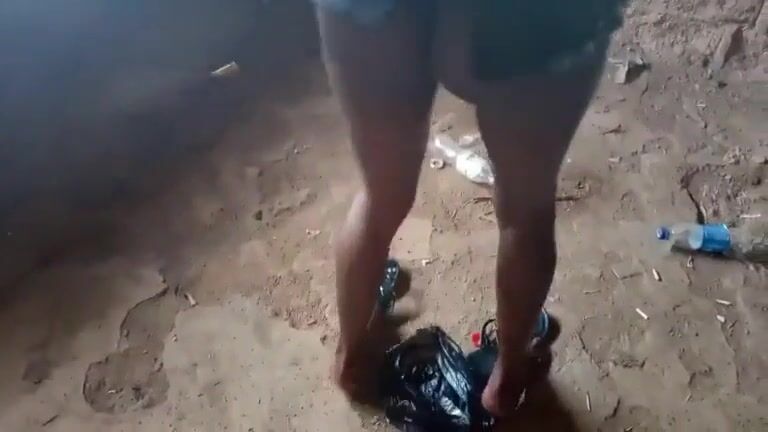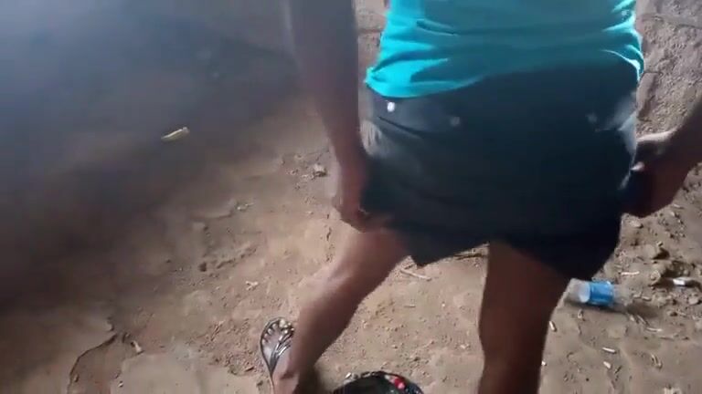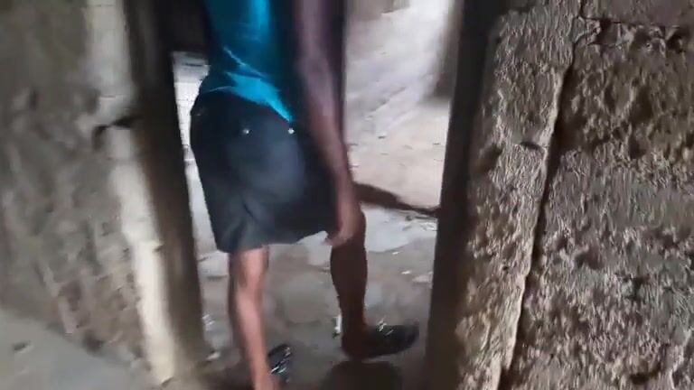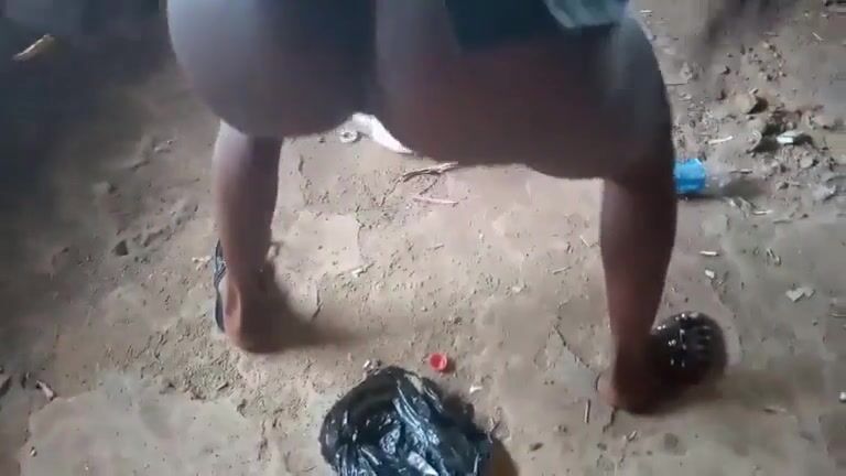 Amateur African gal poops in an abandoned building