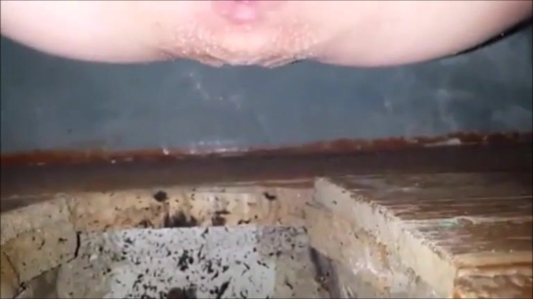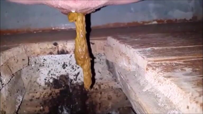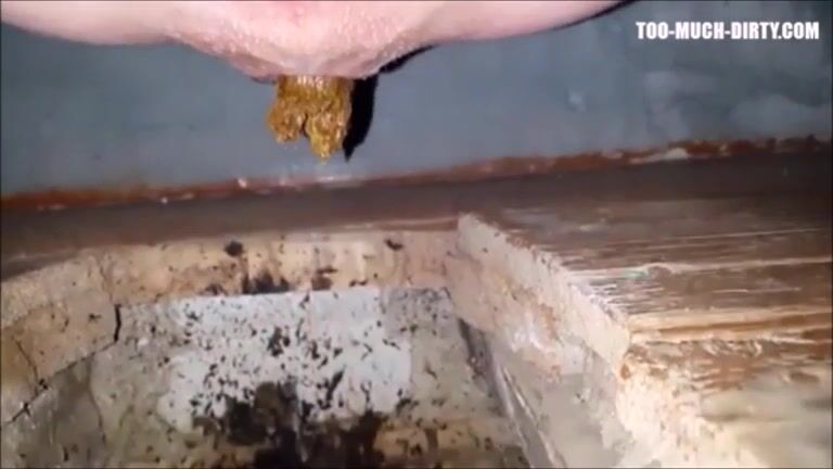 Constipated girl non stop shitting in a dirty toilet