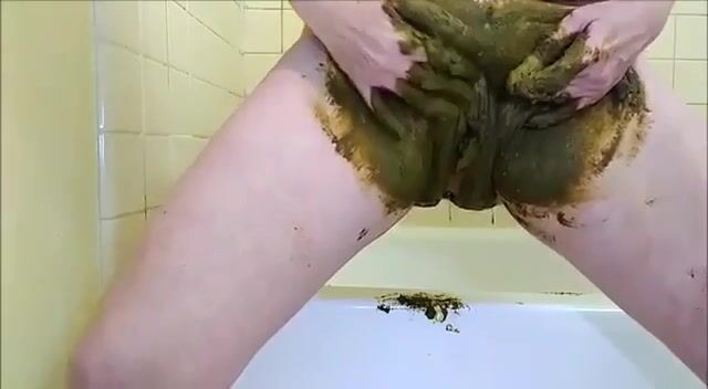 Girl shitting in the shower and smering it on body