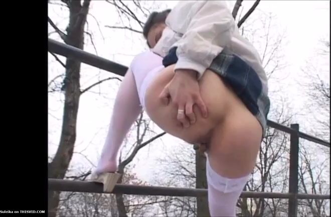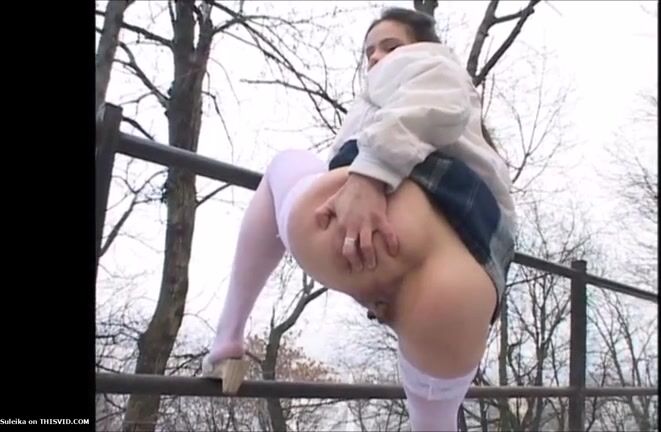 Girl open wide legs and shitting on the toilet floor