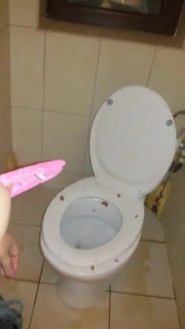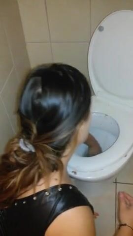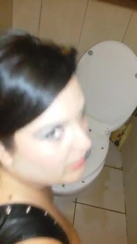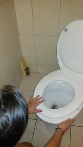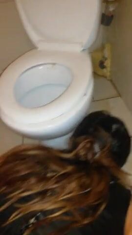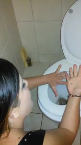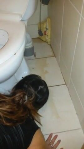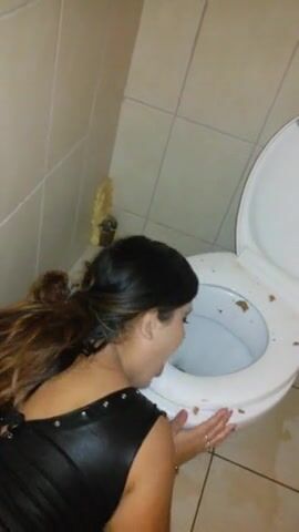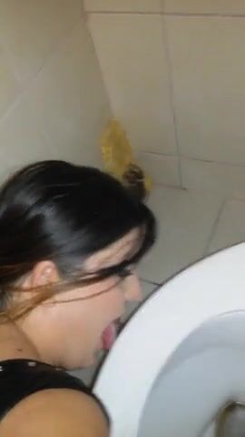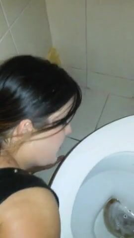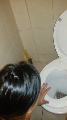 submissive scat whore cleaning toilet with tongue