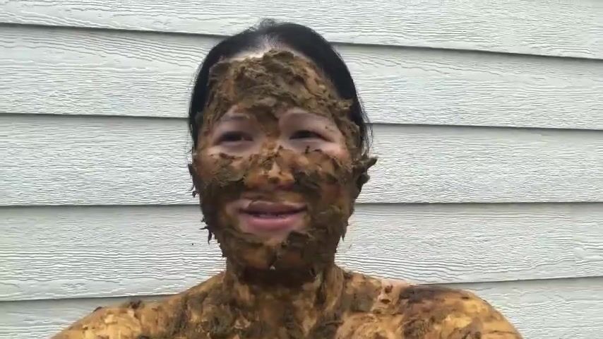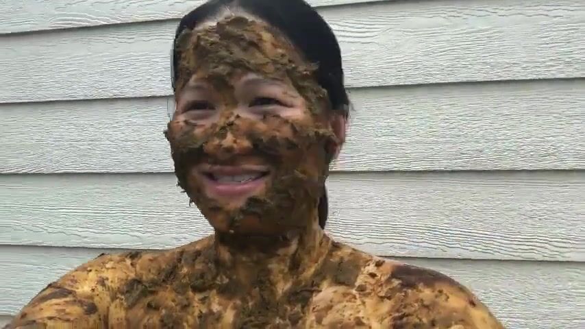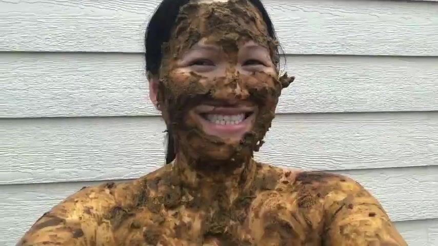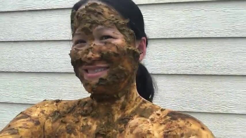 Asian woman smiles covered in scat