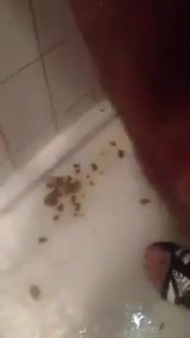 very dirty enema in bathtube