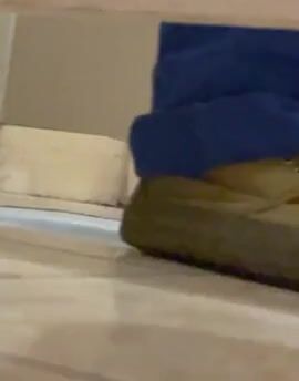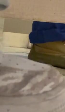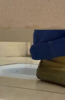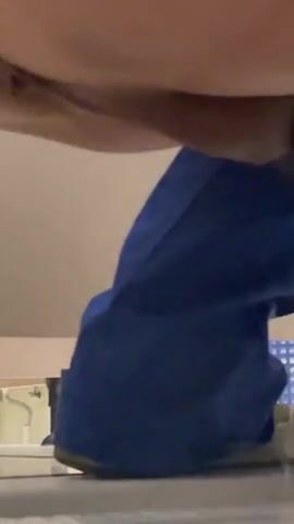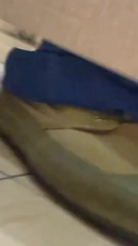 Girl shit and piss on white panty in the bathtub