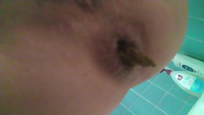 Girl open wide legs and shitting on the toilet floor