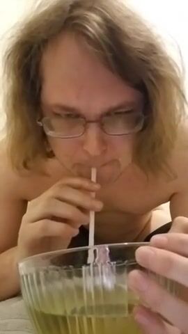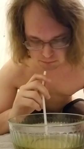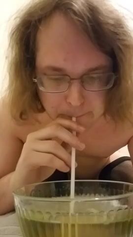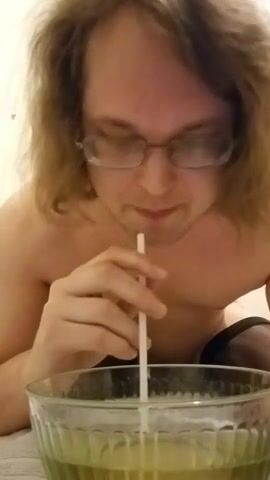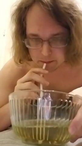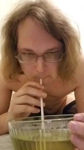 piss slave chugs a lot of piss out of bowl
