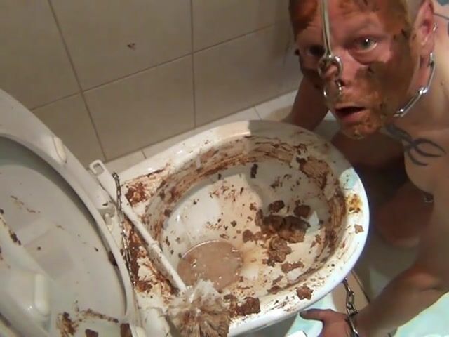 slave has fun with toilet scat fetish