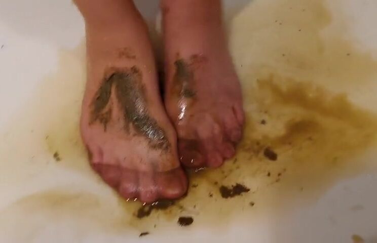 Very messy dog shit nylon feet