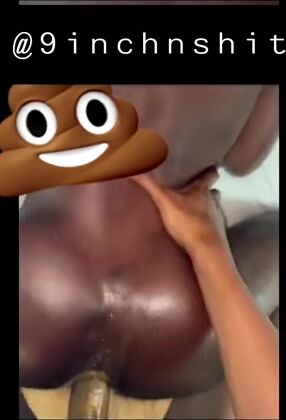 Black slut swallows scat straight from ass