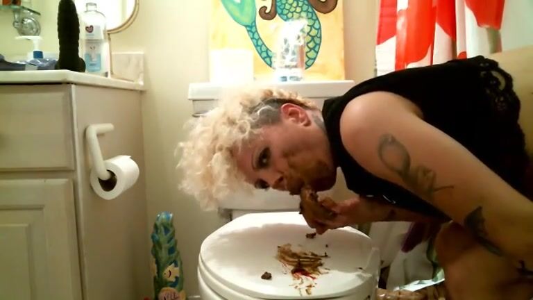 Tattooed blonde shitting and eating her shit - Scat Fan Club