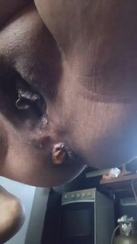 Black slut swallows scat straight from ass