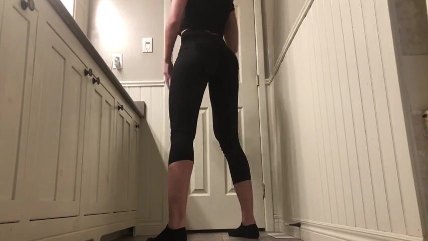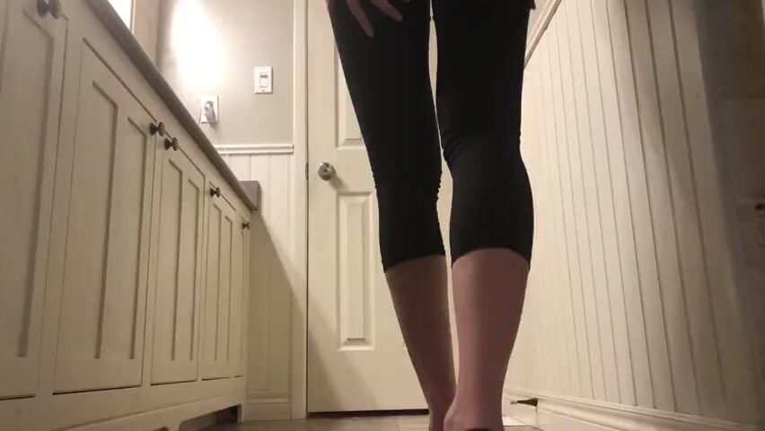 Girl open wide legs and shitting on the toilet floor