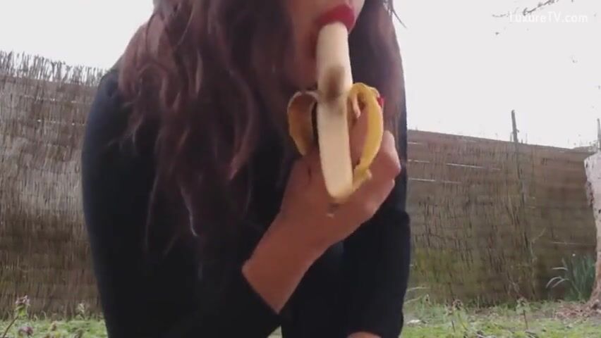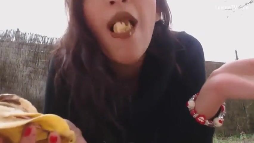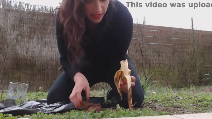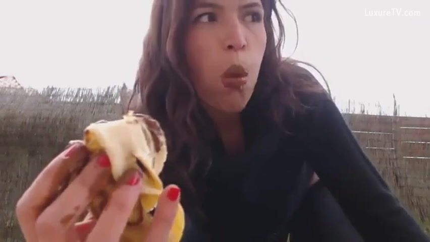 scat girl pooping on banana then eats it outdoor