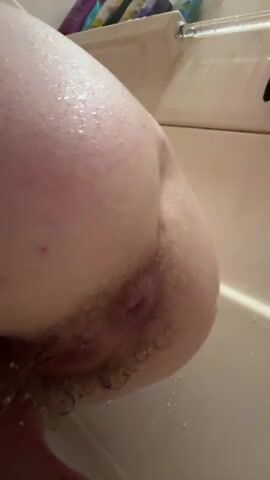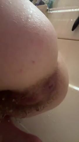 teen self piss enema in bath with hairbrush anal