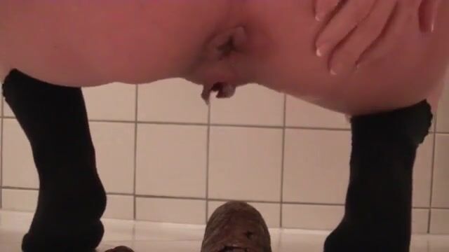 Milf pushing put huge turd