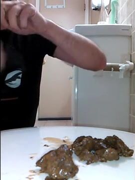 Je fais un beau caca bien dur et je m'offre une dégustation et une éjaculation