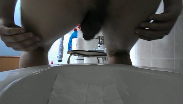 Un énorme caca dodu que j'expulse hors de mon cul, je déguste, j'éjacule 2x dessus