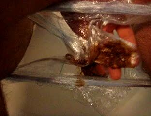 Scat play with condom full of shit