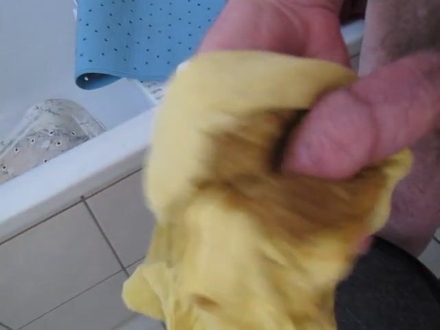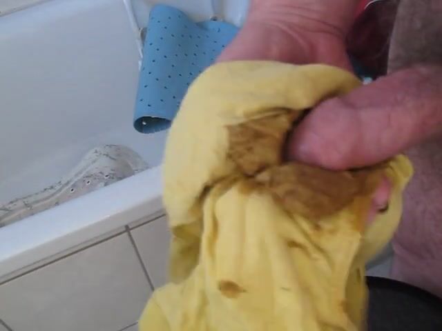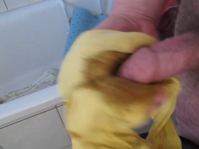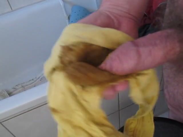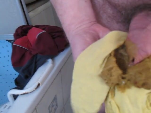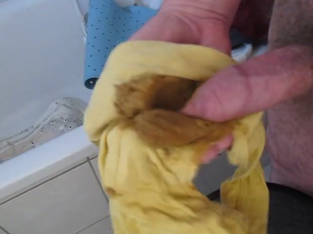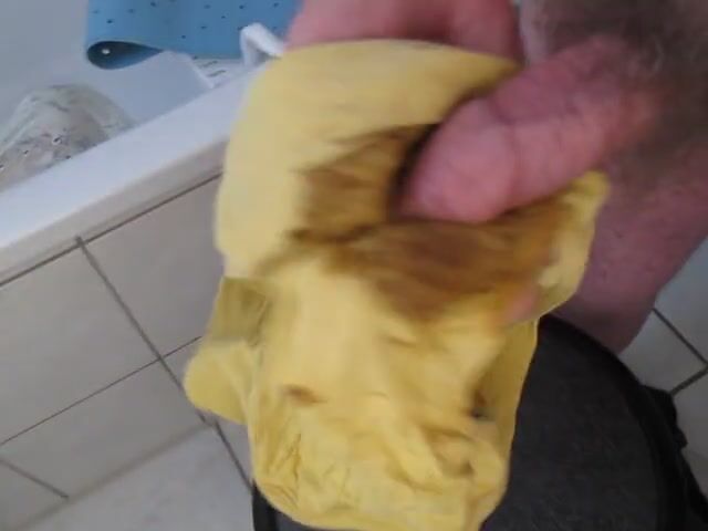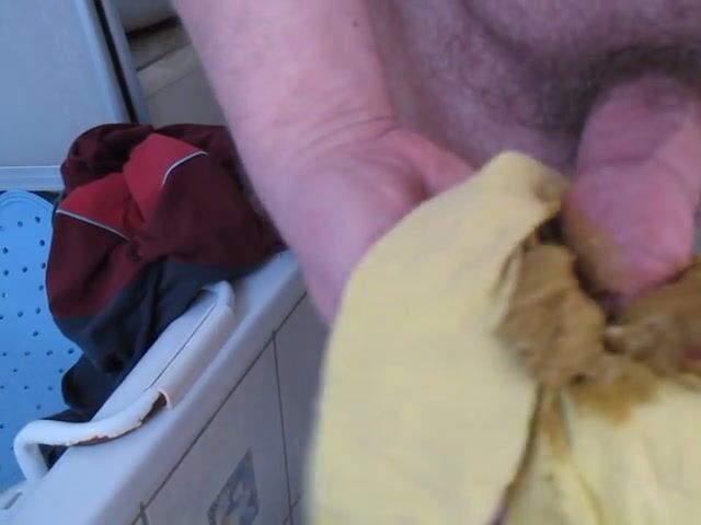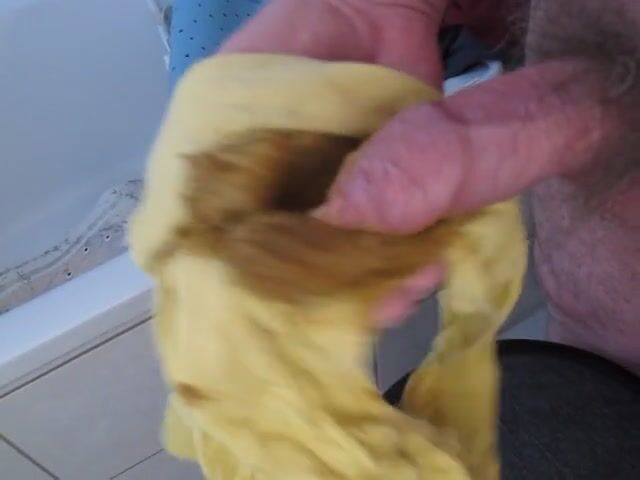 Wank with shit in yellow pants