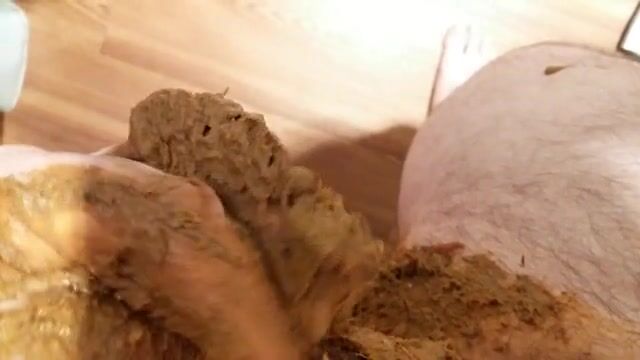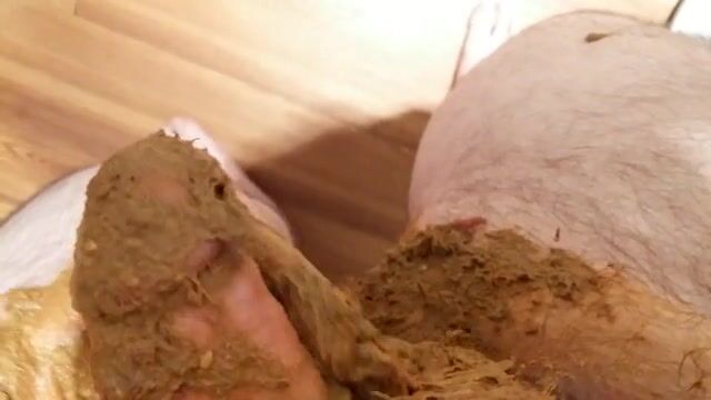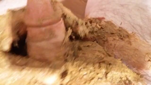 Débordement fécal, je me frotte la verge dans mon caca et je jouis sur mon anus