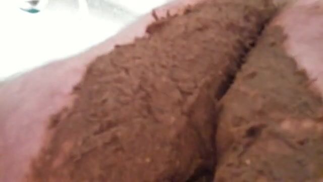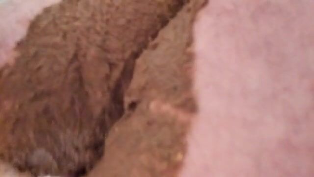 Grosse, dure et longue décharge fécale, inondée de foutre chaud