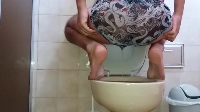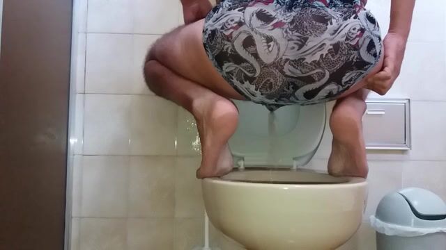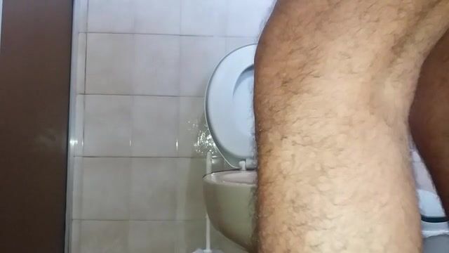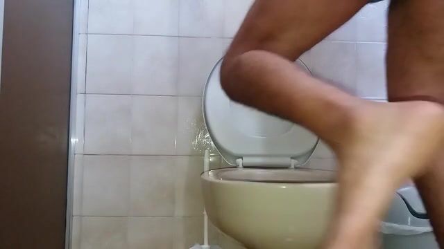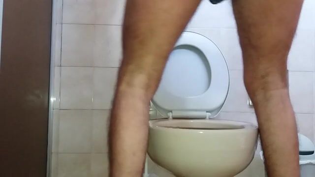guy sitting on toilet piss with his small cock and shit
