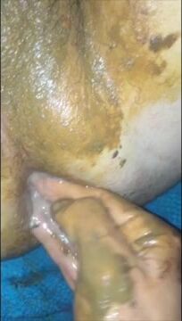 Caca dans la main, jeux scatos, étalage et éjaculation