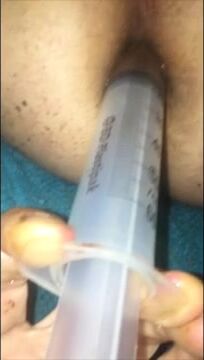 Filthy Scat Pumping in Gas Mask and Rubber Boots