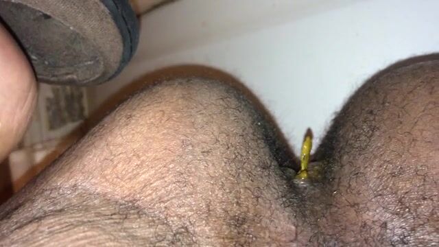 L'anus encore sale d'avoir fait un gros caca, je frotte mon sexe dessus et je jouis t