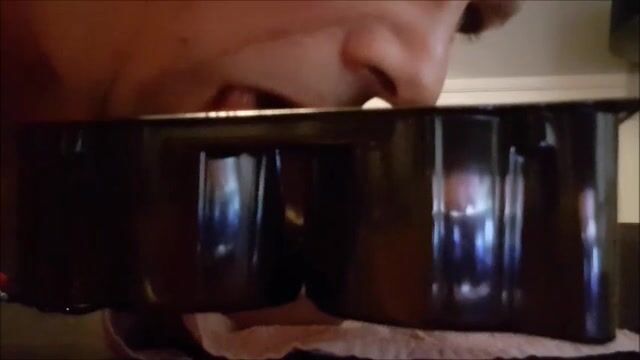 Scat loving cross dresser has boyfriend squat and shit in his mouth then has him p...