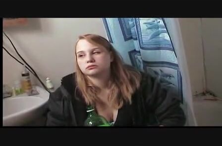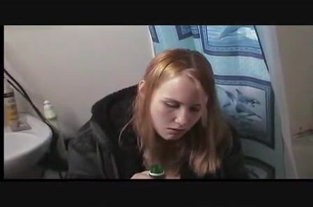 Bulimia Vomit and Food Poisoning - puking into a barrel in the bathroom mp4