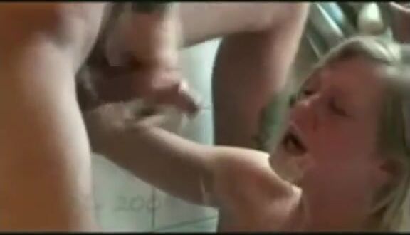 hot blonde deepthroats, gags, pukes and gets a fac