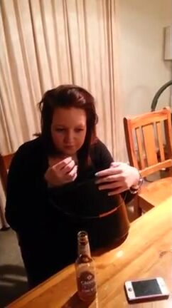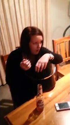 retard drinks and gargles her puke for 45 minutes