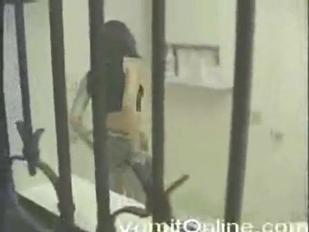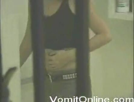 hot brunette puking in public restroom