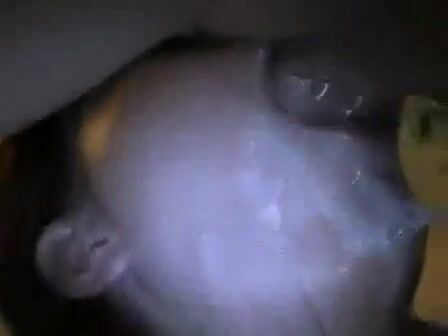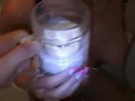 Hot brunette drinks milk and gets throat fucked