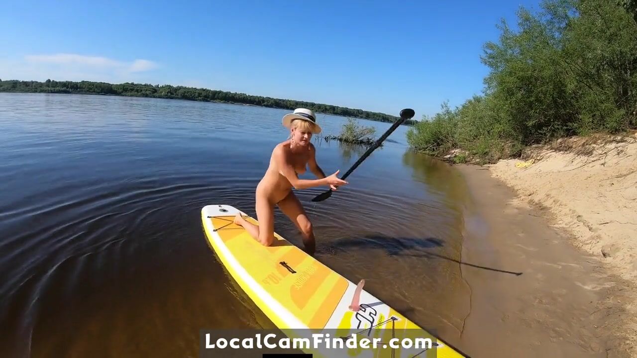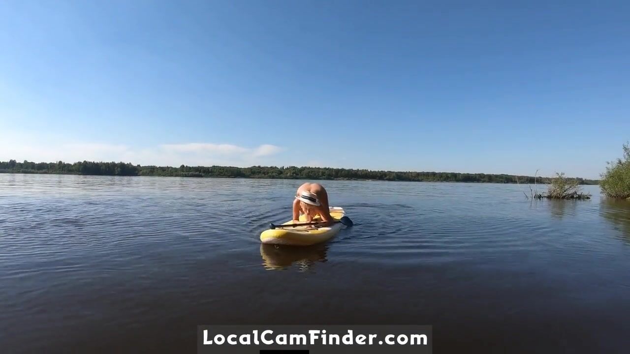 Blonde MILF Plays with Dildo and Gives Blowjob on a SUP Board