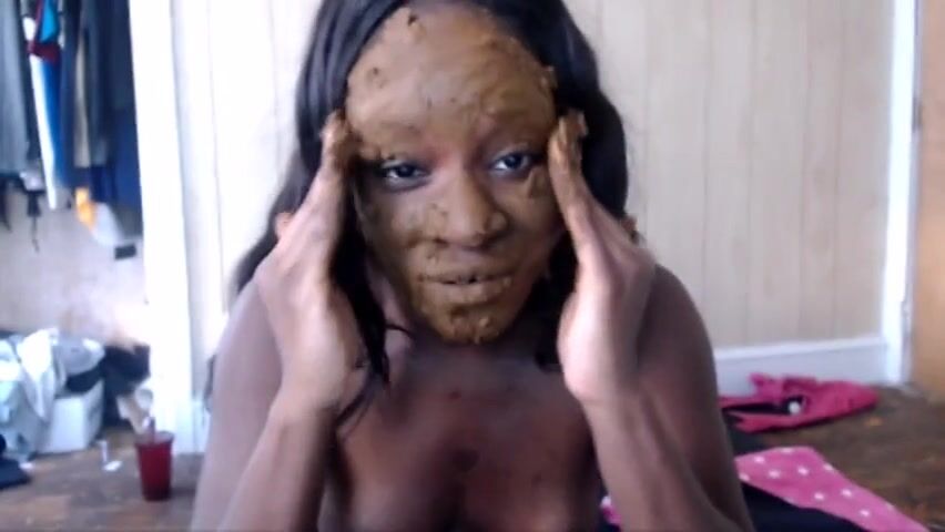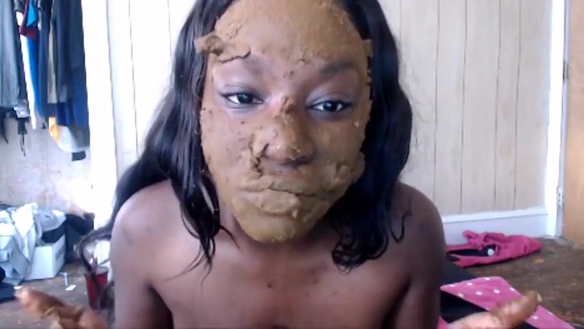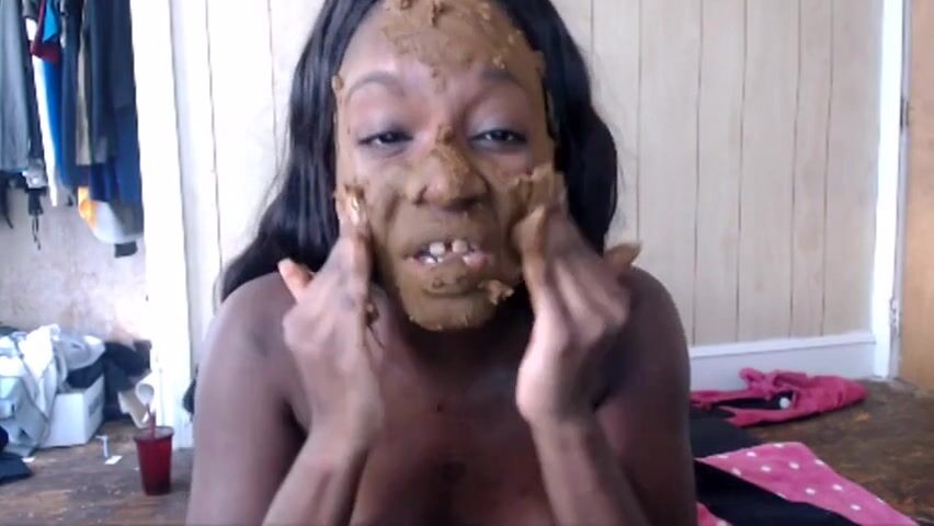 Ebony scat fetish girl smearing shit on the face
