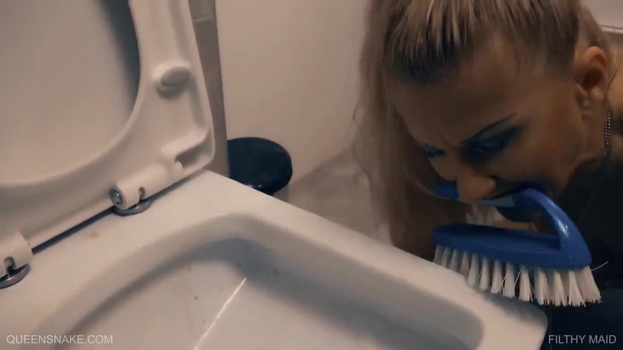 Dirty milf licking toilet