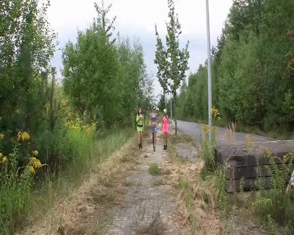 Public wood walking girl shits into panty and mast