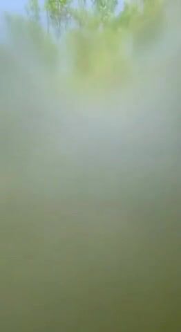 Girl poop in forest.