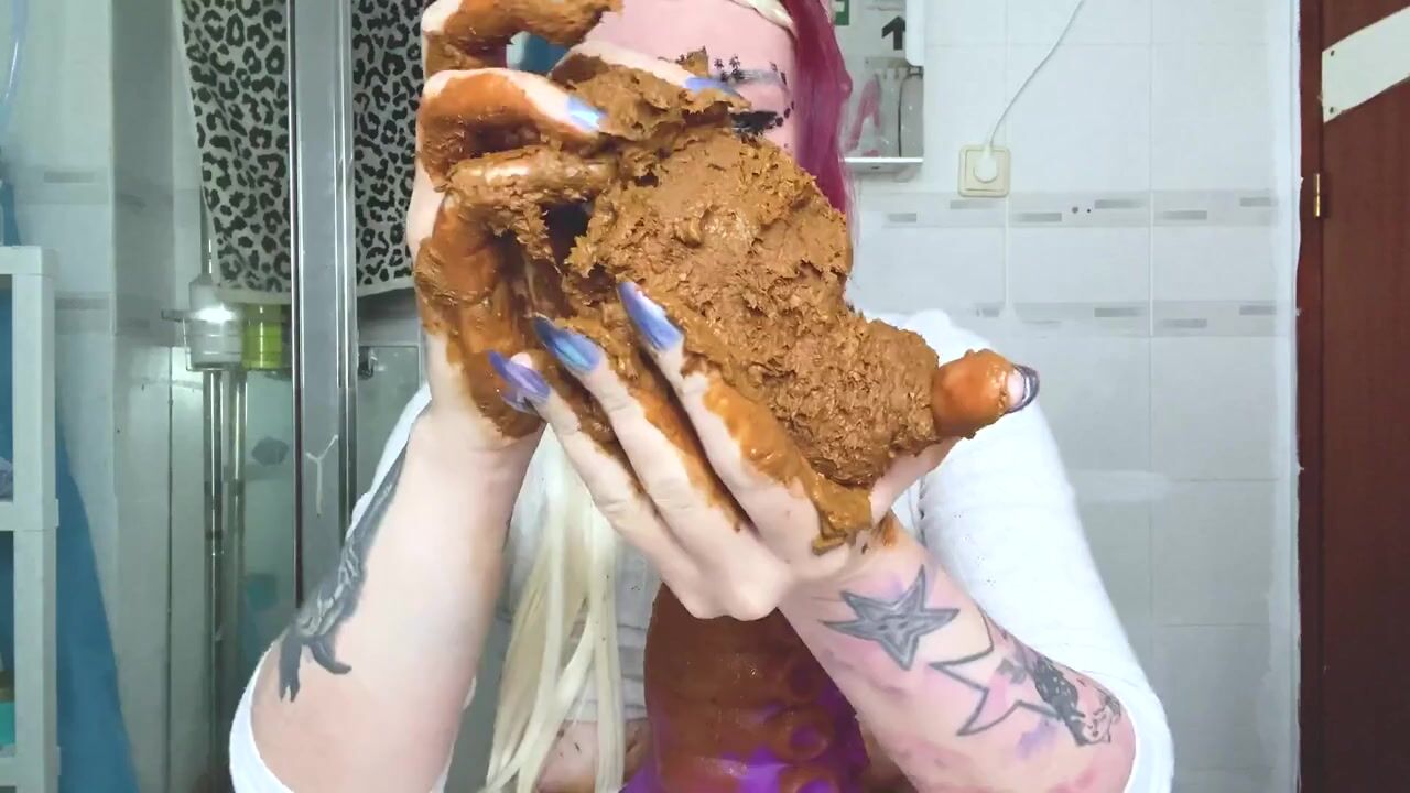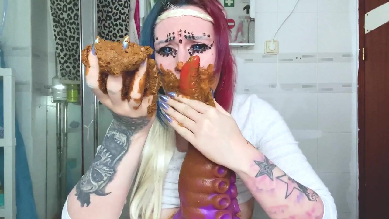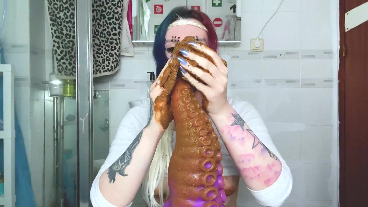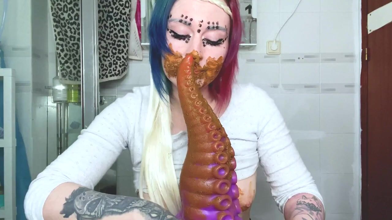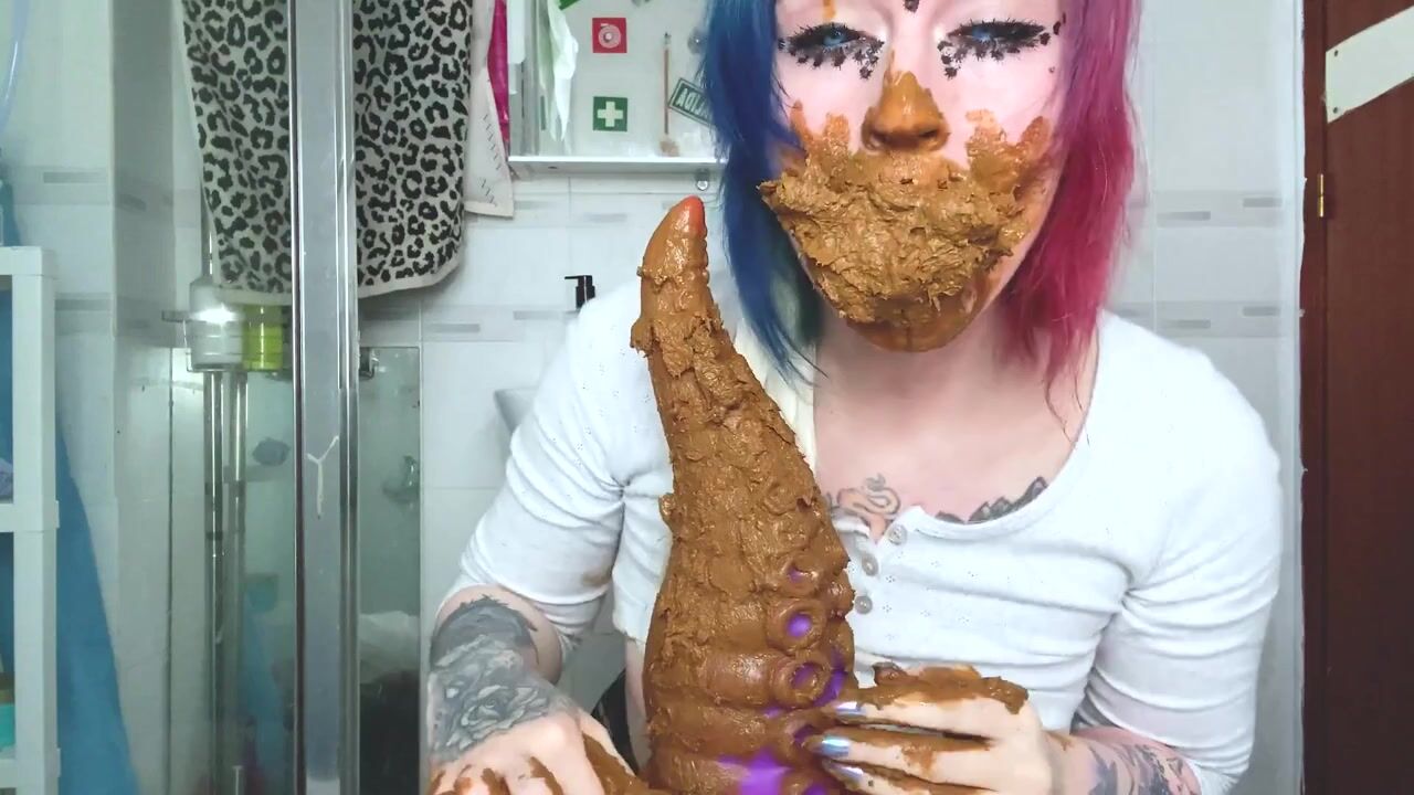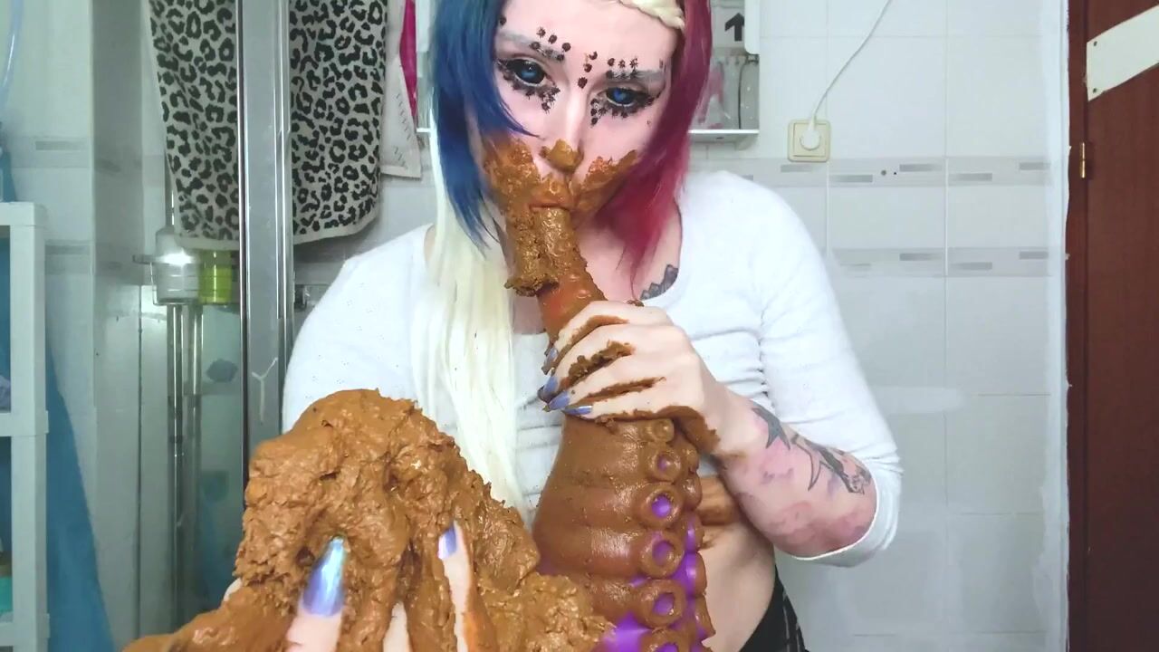 Scat Slag Sucks Shitty Toy from her Filthy Arse