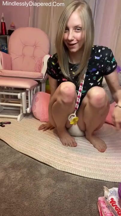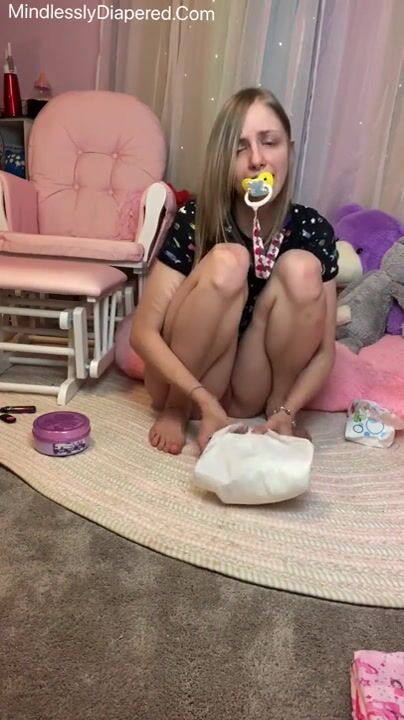 Girl piss on her dirty diaper while changing
