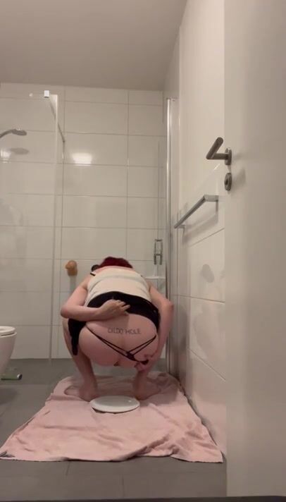 cute and sexy naked dark blonde crapping and peeing