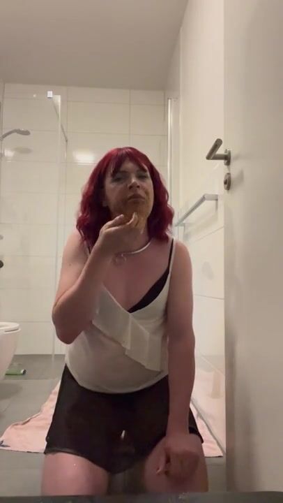Sissy toilet playing with shit