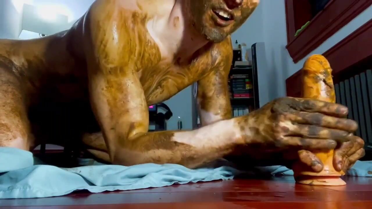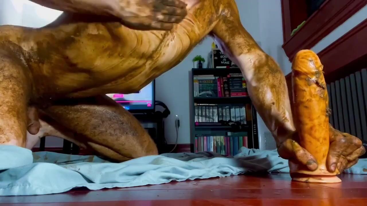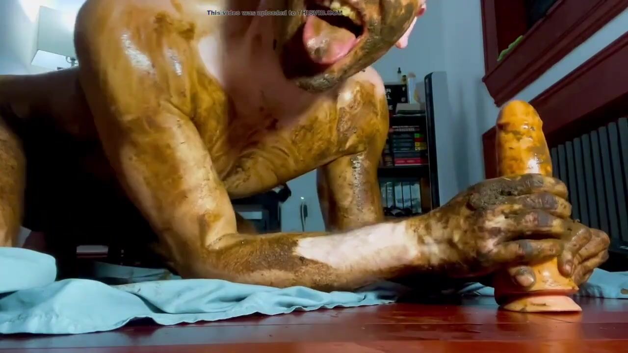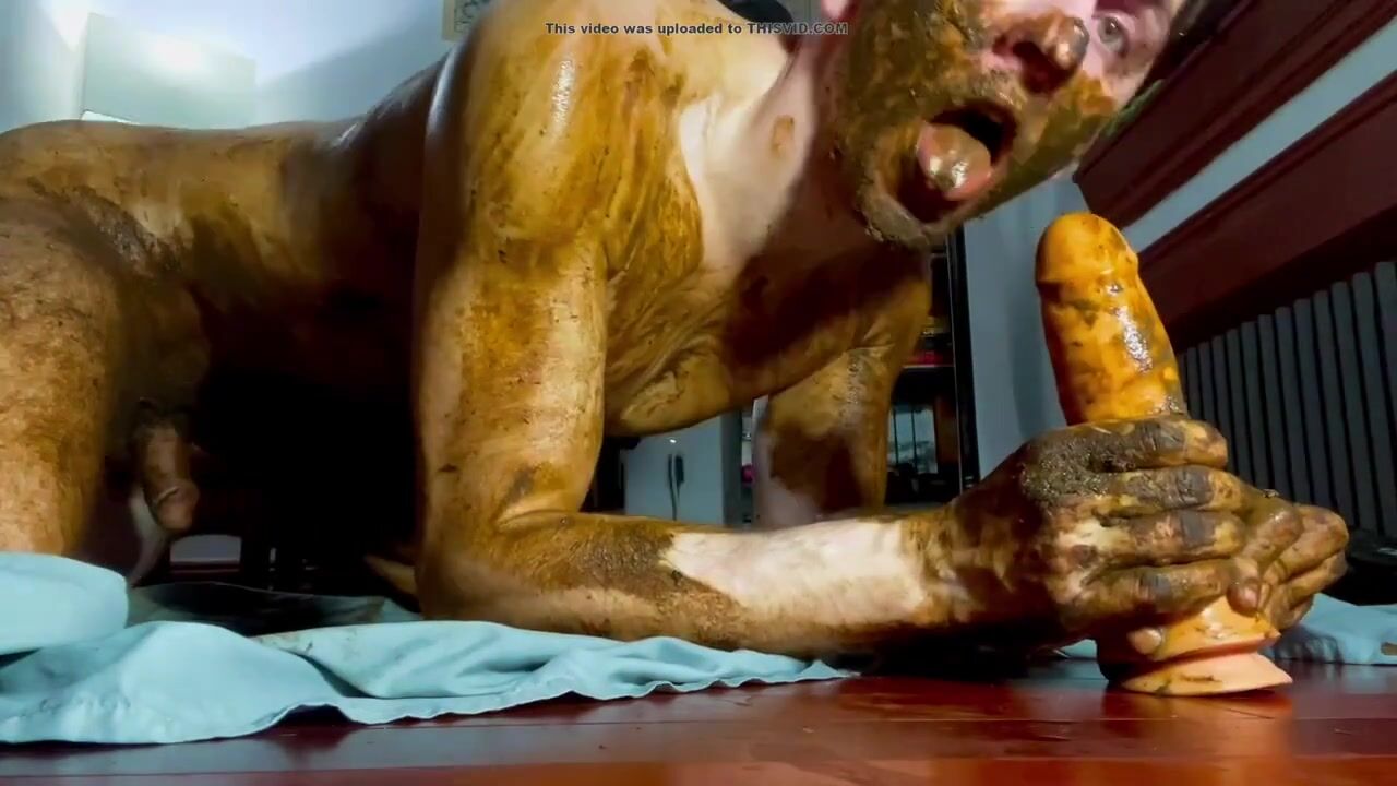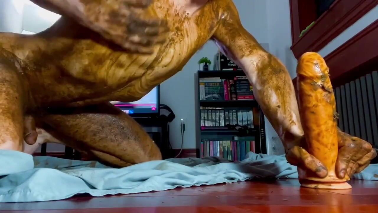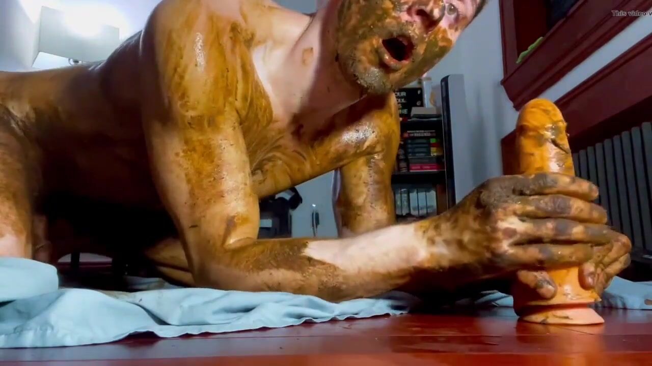 cute twink totally smeared in shit, dildo