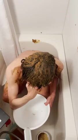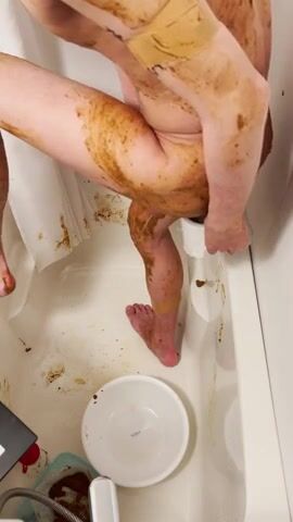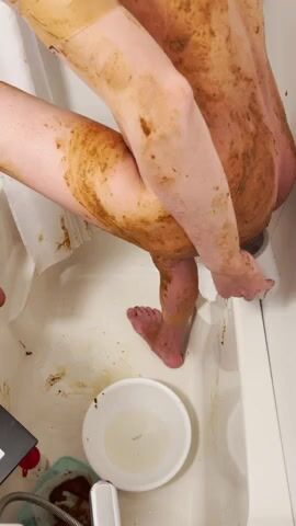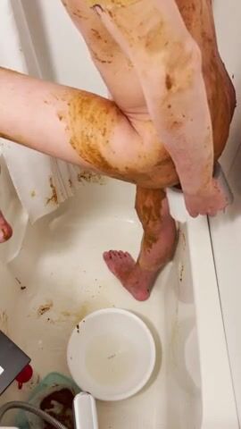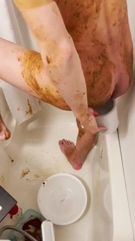 asian guy smearing shit in tub
