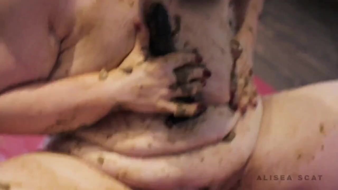Chubby blonde slut smears with shit all of her bod
